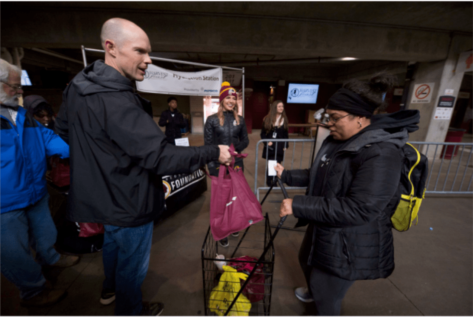 This year’s Harvest Feast was the 16th annual pre-Thanksgiving food distribution event for Prince George’s County residents in need. The event was made possible through the generosity of our partners and sponsors, specifically, Ryan Homes, Shoppers Food and Pharmacy, Bank of America, Capital Area Food Bank, PepsiCo, Prince George’s County Social Services and the Redskins Charitable Foundation. On Tuesday, November 13th, volunteers assisted in distributing 7,500 bags of dry goods, perishables and beverages to families.