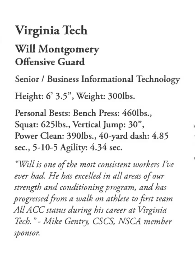 Virginia Tech NSCA 2006 All-American Strength Athlete Of The Year Share this: Click to share on X (Opens in new window) X Click to share on Facebook (Opens in new window) Facebook Click to share on WhatsApp (Opens in new window) WhatsApp Like Loading...